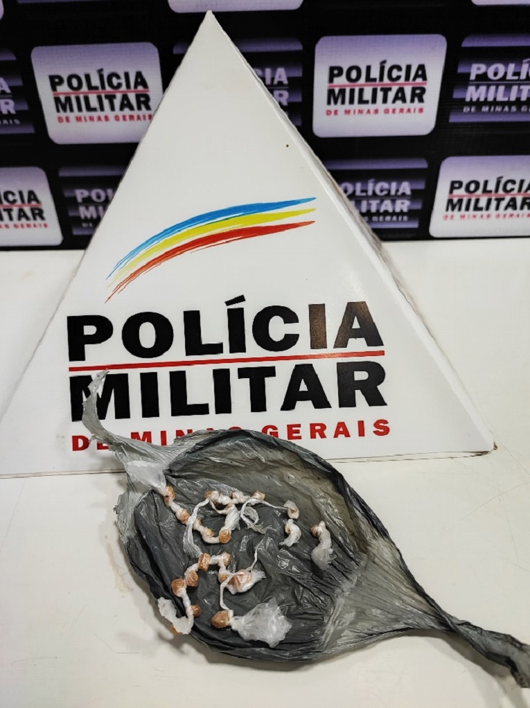Durante a operação, os militares abordaram um jovem suspeito de envolvimento com o comércio de entorpecentes na região. Ao perceber a aproximação da equipe policial, o indivíduo tentou se desfazer de uma sacola que estava próxima ao meio-fio. No interior da sacola, foram encontradas 22 pedras de crack, evidenciando a prática do crime de tráfico de drogas.