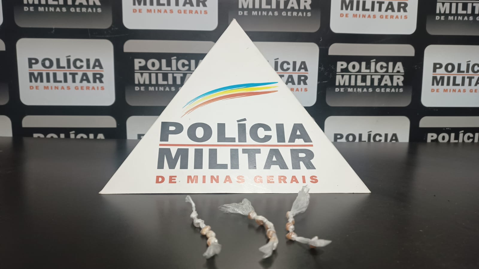 Durante a abordagem e busca pessoal, nada de ilícito foi encontrado com os suspeitos. No entanto, ao verificar o objeto descartado, os militares constataram que se tratava de quinze pedras de crack, organizadas em três cordões de cinco pedras cada, prontas para comercialização.