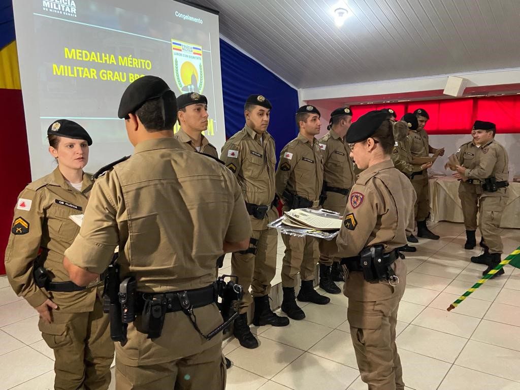 Também foi realizada a entrega da medalha militar grau bronze, que confere ao policial o devido reconhecimento, prêmio, enaltecimento e distinção por 10 anos de bons serviços prestados à Polícia Militar de Minas Gerais.