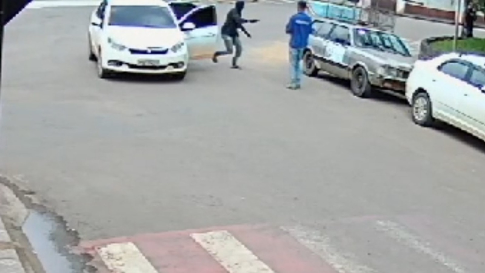 A Polícia Militar foi acionada para comparecer no centro da cidade onde havia ocorrido um roubo. No local, em contato com a vítima, que é funcionário de um supermercado, ela informou que deslocava para um banco para entregar um malote com o dinheiro do caixa, momento em que foi parado por um veículo Gran Siena e o carona desceu do veículo com uma arma na mão e anunciou o roubo subtraindo o malote e fugindo em seguida.