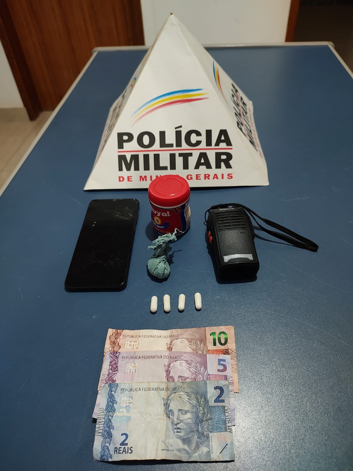 Durante operação Batida Policial, equipe da Polícia Militar Patrulha abordou um indivíduo conhecido no meio policial por envolvimento em delitos. No decorrer das buscas foram localizados quatro comprimidos, um pote e um papelote contendo cocaína, além de um telefone celular e um rádio comunicador.