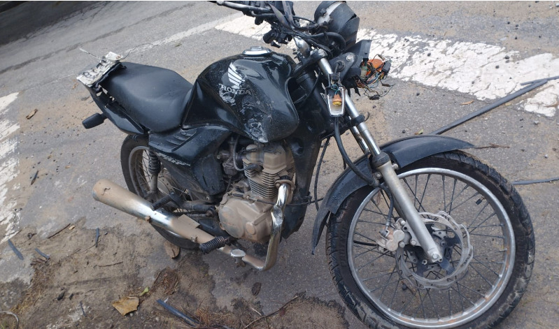 A motocicleta utilizada no crime, uma Honda/CG 125 Fan de cor preta, estava com placa adulterada e foi removida para o pátio credenciado. Os objetos recuperados foram apreendidos e encaminhados à Delegacia de Polícia Civil.