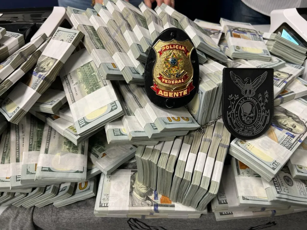 O dinheiro foi encontrado no fim da tarde desta quinta-feira (7) com um dos presos na operação, enviado à Caixa Econômica Federal e contabilizado de forma total nesta sexta-feira (8). Todo o montante em espécie estava em uma parede falsa. Os policiais precisaram usar uma marreta para quebrar o local.