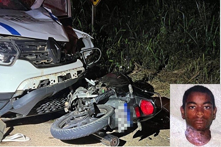 Um jovem de 19 anos morreu na noite deste domingo (30), após uma colisão frontal com uma viatura da Polícia Militar.