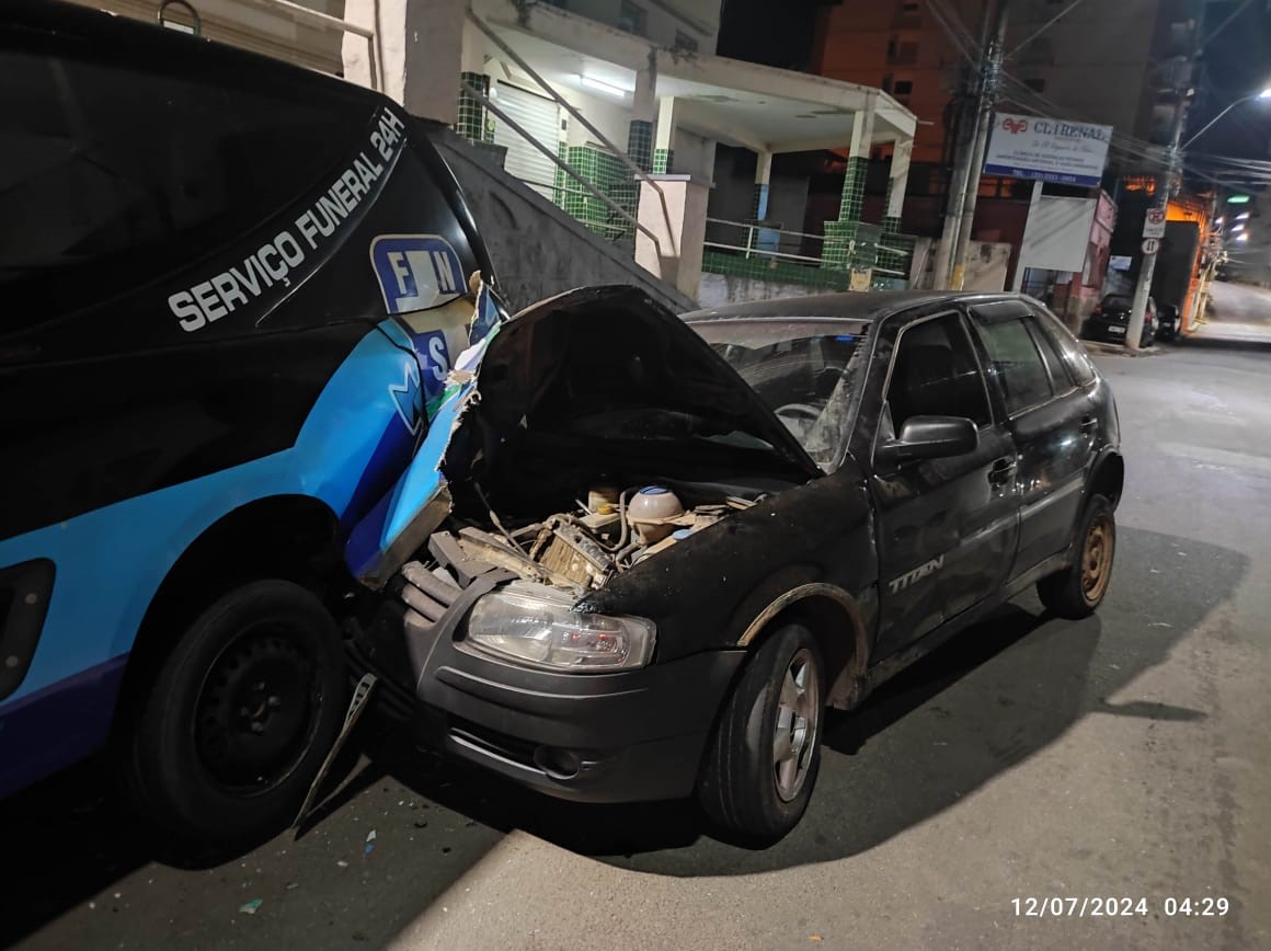 De acordo com o relato do solicitante aos militares, ele percebeu o acidente por volta das 5h, quando viu que o veículo da funerária, que estava estacionado na via, havia sido atingido na traseira por um Gol.