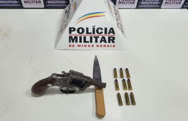 Diante disso, foi iniciado patrulhamento e na rua Francisco Vitor de Assis, os militares conseguiram abordar o veículo. Procedida a vistoria, os militares localizaram um revólver carregado com seis munições, uma faca e três munições no console.