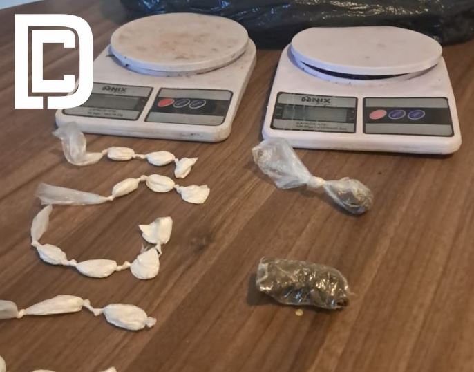 Durante as buscas, a equipe policial militar encontrou dois invólucros plásticos escondidos na vegetação. Em um deles, havia 15 papelotes de uma substância análoga à cocaína e três porções de substância semelhante à maconha. Além disso, foram apreendidas duas balanças de precisão e diversos pinos plásticos usados na comercialização de entorpecentes.