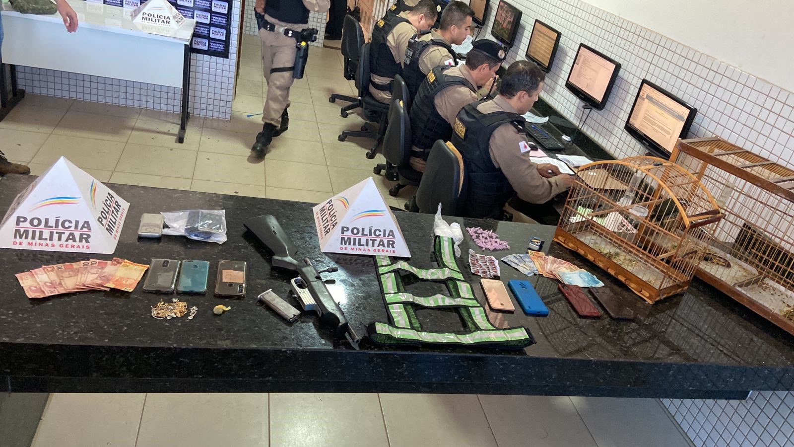 A ação teve como saldo a condução de nove pessoas, sendo seis maiores e três menores. Segundo a polícia, todas têm alguma correlação com os fatos. Durante a operação foram apreendidos 27 aparelhos celulares, 11 porções de maconha, duas pedras de crack, uma cápsula com cocaína, dois pássaros sem anilha, uma munição calibre 38, R$ 398,00, uma arma de fogo aparentando ser uma carabina puma 38 modificada, um colete reflexivo da Polícia Militar, uma balança, uma motocicleta com chassi raspado, várias bijuterias e um cordão dourado.