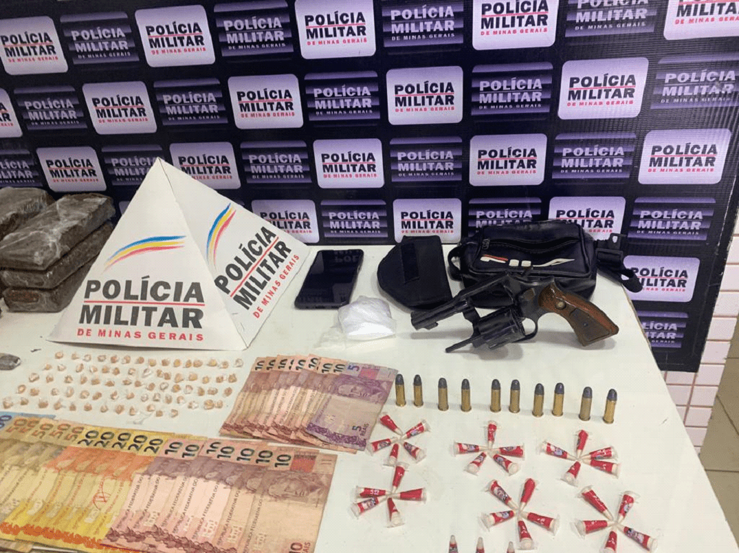 De acordo com o aspirante Gilberto, a operação foi desencadeada para cumprimento de dois mandados de busca e apreensão. “Deslocamos até o local na residência do autor, ouvimos um barulho como um telhado quebrando. Fomos para cima da casa e após as buscas, encontramos dez barras de maconha, um revólver calibre 38, dez munições, 33 pinos de cocaína 72 pedras de crack e uma balança”, especificou.