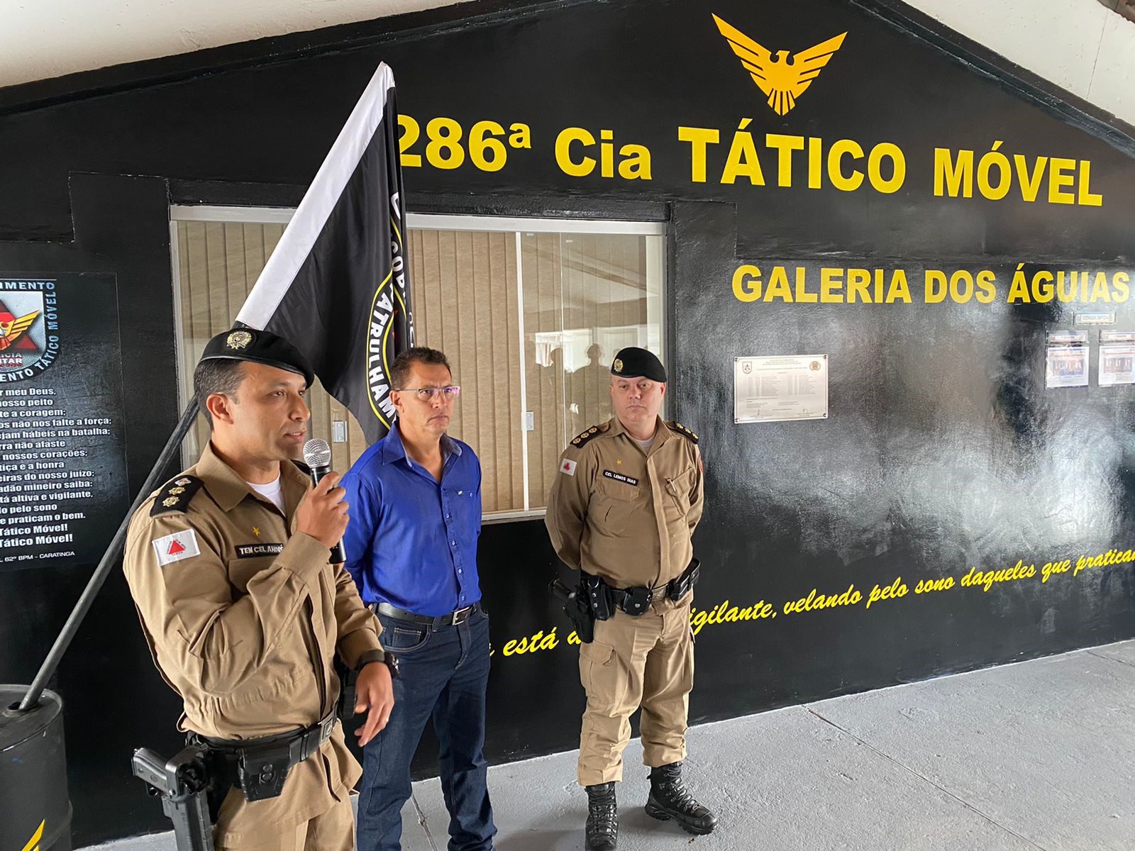 Ainda pela manhã, foi realizada uma homenagem aos militares destaques do primeiro semestre do ano de 2022, além de ter ocorrido a solenidade de descerramento da placa alusiva aos formandos do 1° Curso de Rádio Patrulhamento Tático Móvel do 62° BPM, que foi fixada na “Galeria dos Águias”.