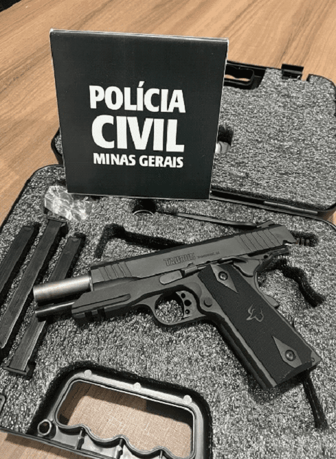 “Diante disso, o investigado, nesta terça-feira (24), foi intimado a comparecer na delegacia, ocasião em que ele concordou em efetivar a entrega de duas pistolas, sendo uma Imbel do calibre .9mm e uma Taurus do calibre .45”, informou a PC.