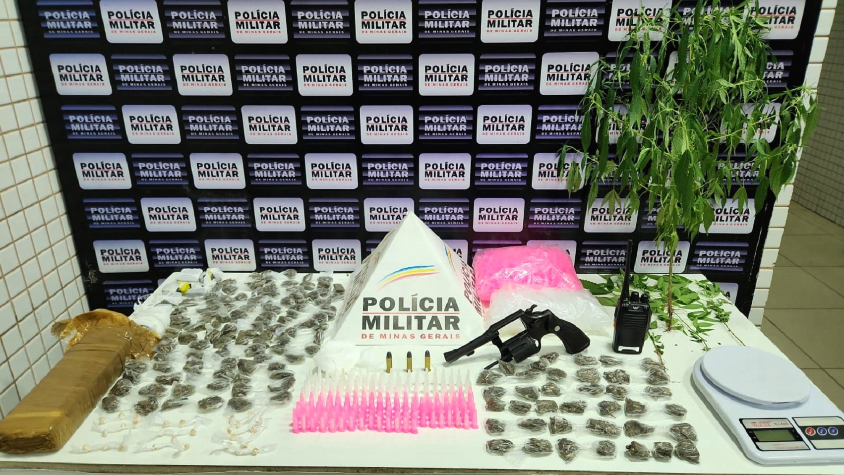 Ao entrarem em um barraco com as portas e janelas abertas, os militares viram uma arma de fogo sobre uma cama. No decorrer das buscas, foram encontrados 177 pinos com cocaína e uma porção da mesma droga, 30 pedras de crack, quatro pés de maconha e sete tabletes e 143 buchas do mesmo entorpecente, um rádio comunicador, uma balança e um sacola com pinos vazios.