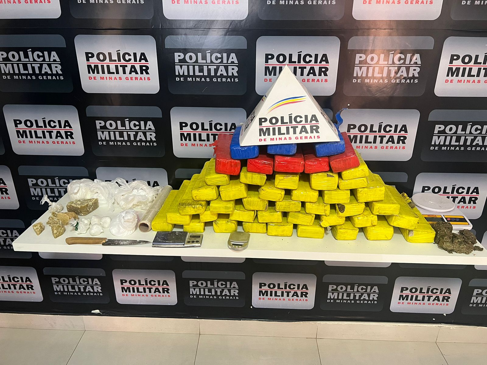 A ação resultou na apreensão de 44 barras de maconha, aproximadamente um quilo de cocaína, cerca de meio-quilo de crack, três balanças e uma faca.