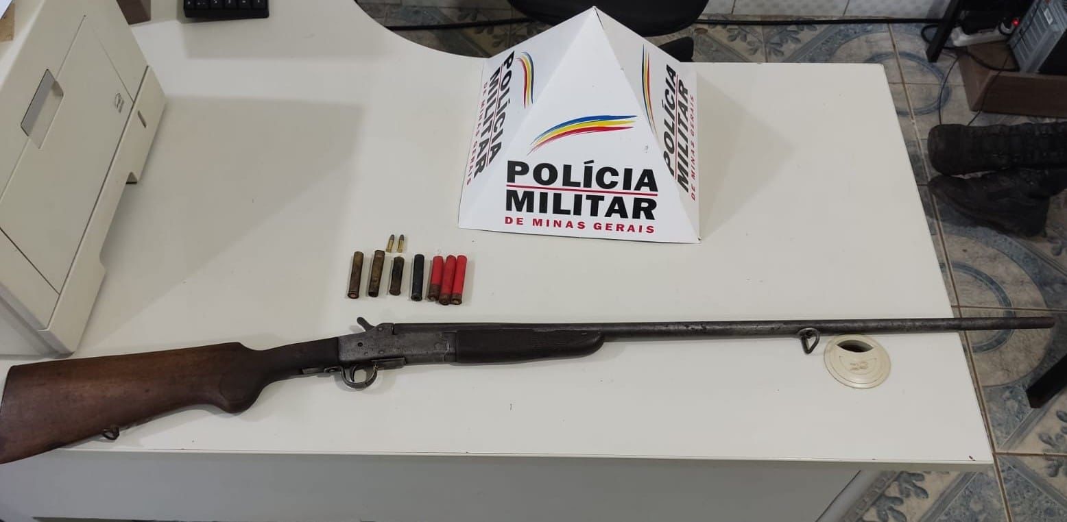 No local foi feito contato com o morador e durante as buscas foi localizada uma espingarda calibre 36 com sete munições do mesmo calibre e duas munições calibre 22.