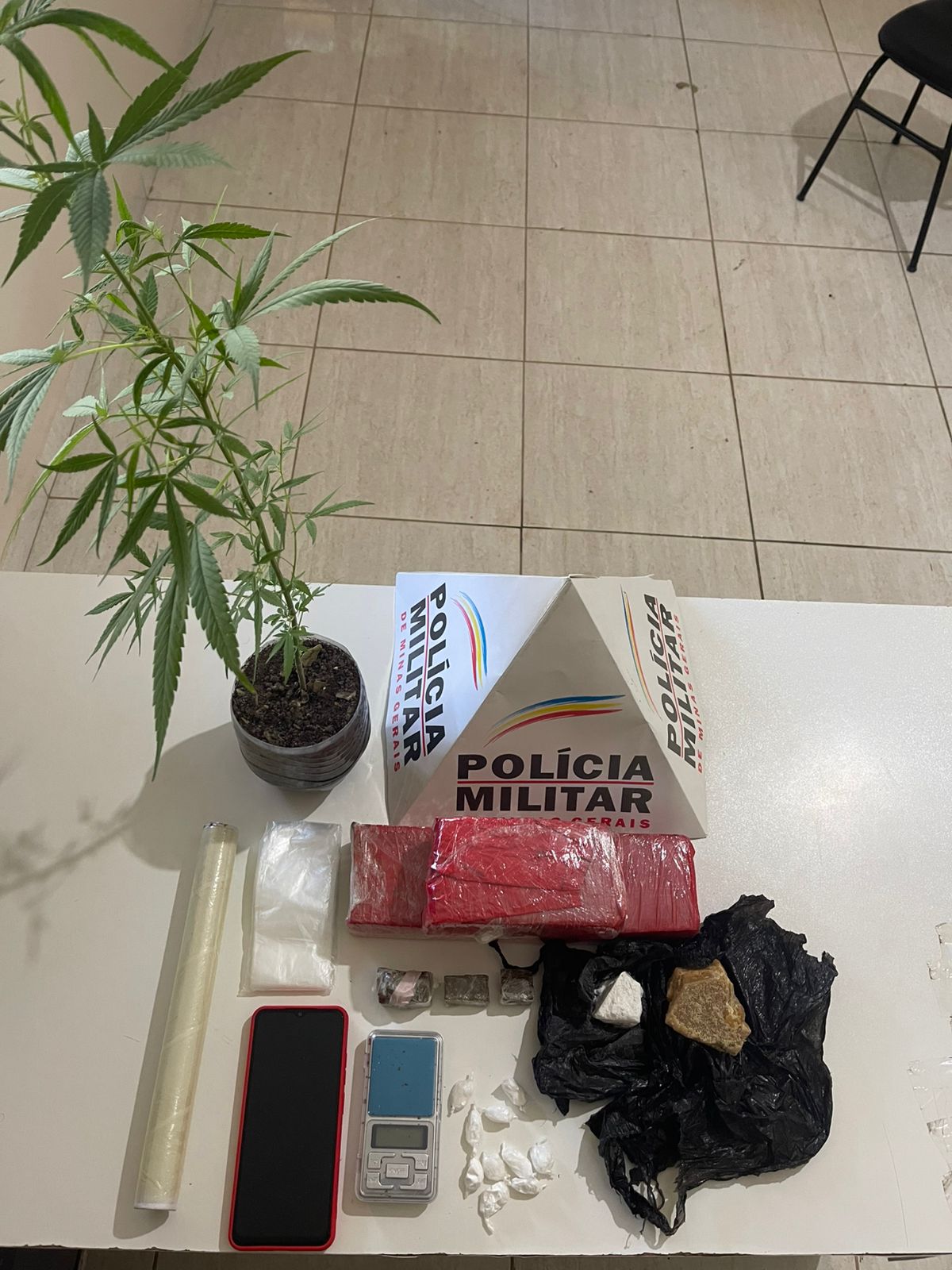 Durante a ocorrência, a namorada do adolescente, uma jovem de 20 anos, também foi questionada sobre a presença de outros materiais ilícitos. Ela entregou aos militares uma caixa de papelão contendo uma barra grande de maconha.