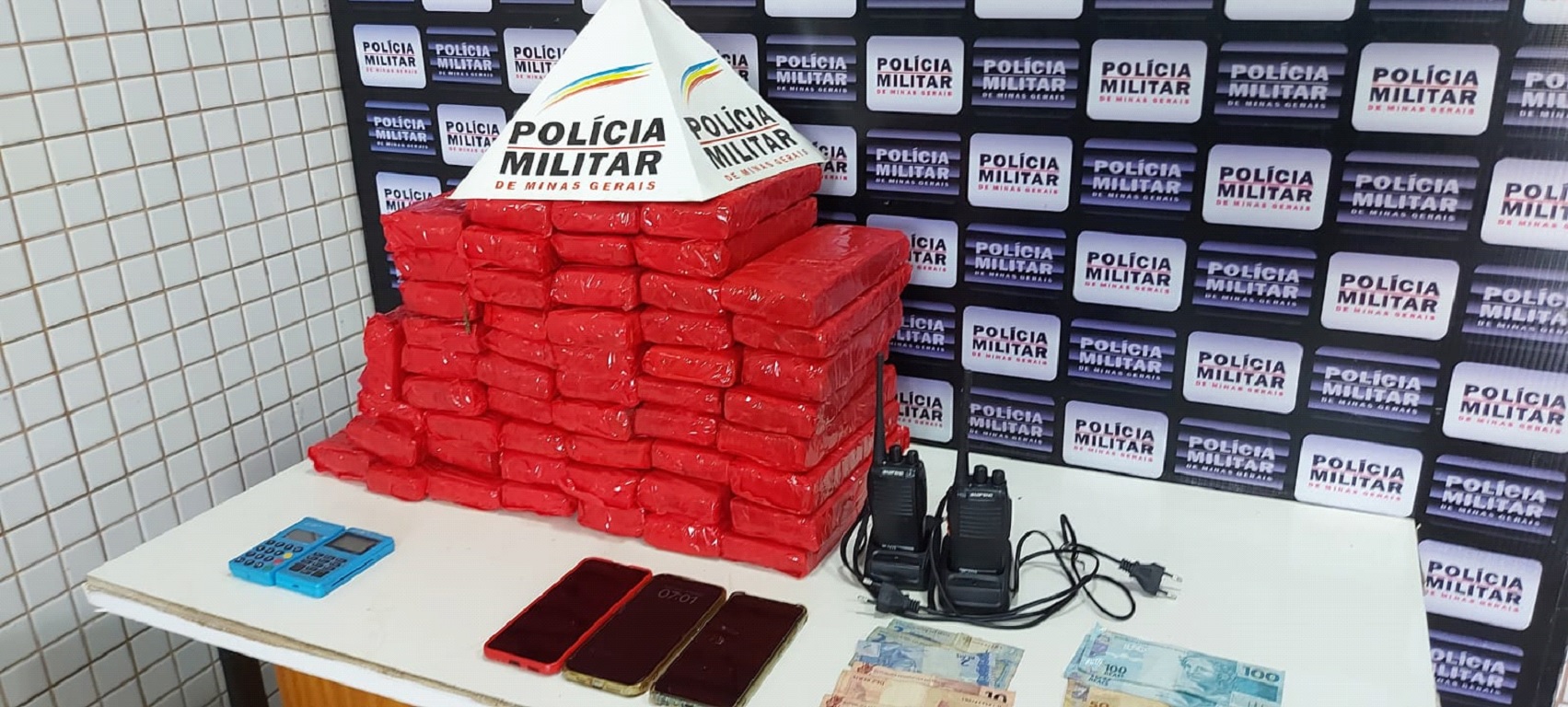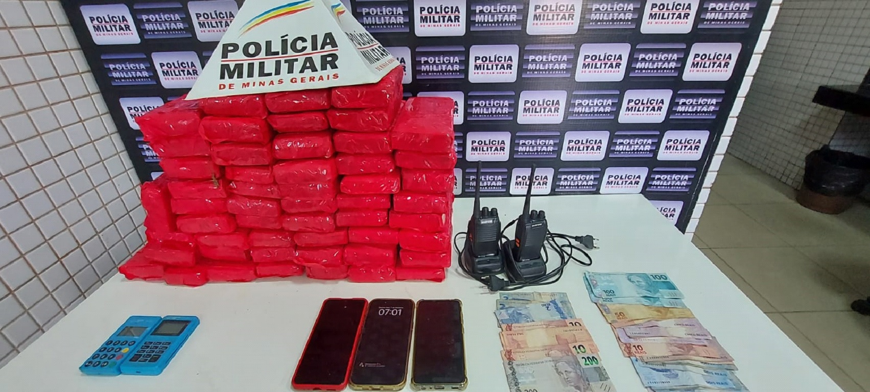 Ao todo, a operação teve como saldo, além das barras de maconha, a apreensão de 570 reais, três telefones celulares, dois rádios comunicadores e duas maquininhas para pagamento de cartão de crédito.
