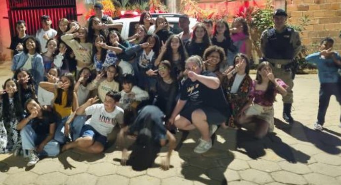 Valentina e os colegas, estudantes da Escola Estadual Anita Garibaldi, admiram a Polícia Militar, considerando os policiais protetores da cidade e da população.