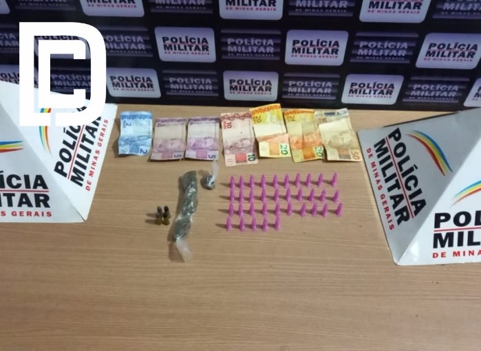 Durante a abordagem, foram encontradas com ele quatro munições calibre .32, uma porção de maconha, uma bucha da mesma droga, 35 micro tubos com cocaína, além de R$112,00.