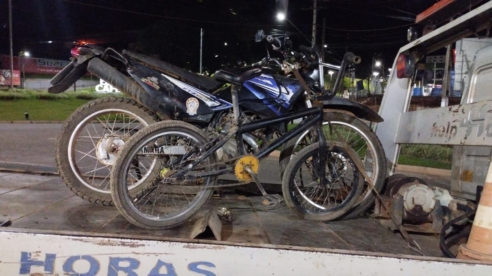 Durante as buscas no local foram localizados ainda uma bicicleta aro 20 de cor preta e um telefone celular Moto G de cor preta.