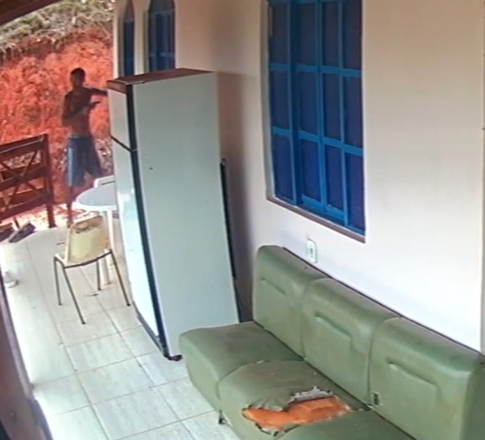 As imagens das câmeras de segurança mostram o momento em que o caseiro aponta a arma para o médico, sugerindo que houve um segundo disparo, e a companheira desligando a energia elétrica do local, dificultando qualquer possibilidade de defesa ou socorro à vítima.