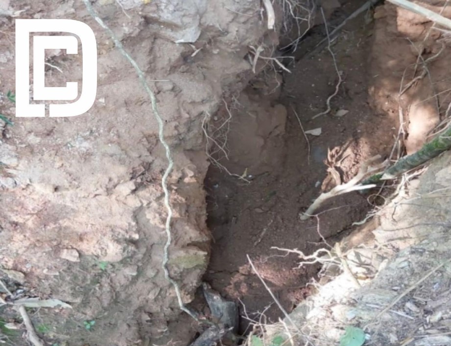 Chegando no local foi avistado um buraco no solo, sendo localizada a vítima, a qual estava parcialmente enterrada.