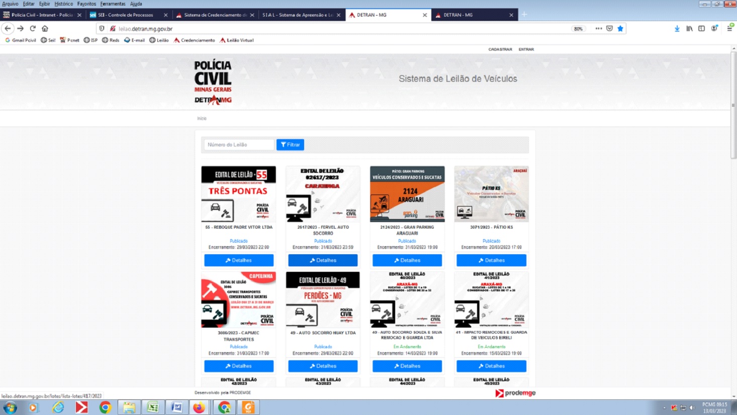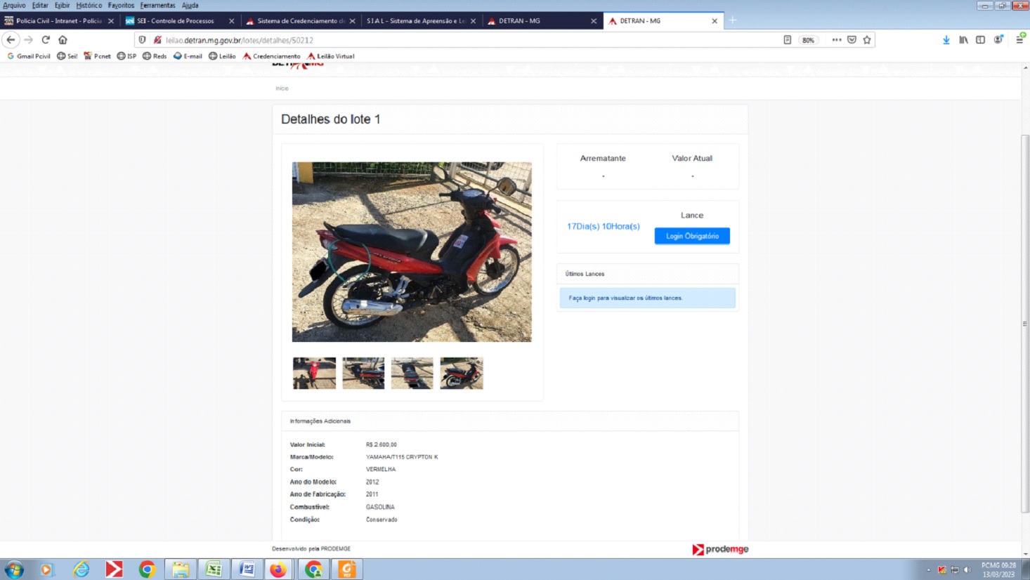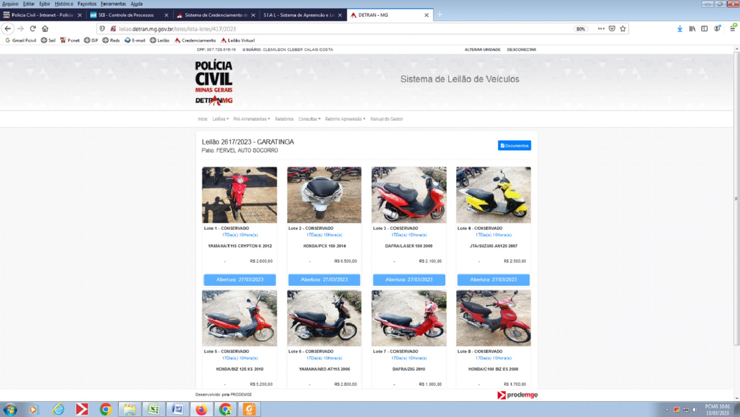 CARATINGA -A delegacia de Polícia Civil de Caratinga estará realizando nos dias 27 a 31 de março de 2023 o primeiro leilão virtual de veículos da Regional no pátio da Fervel.