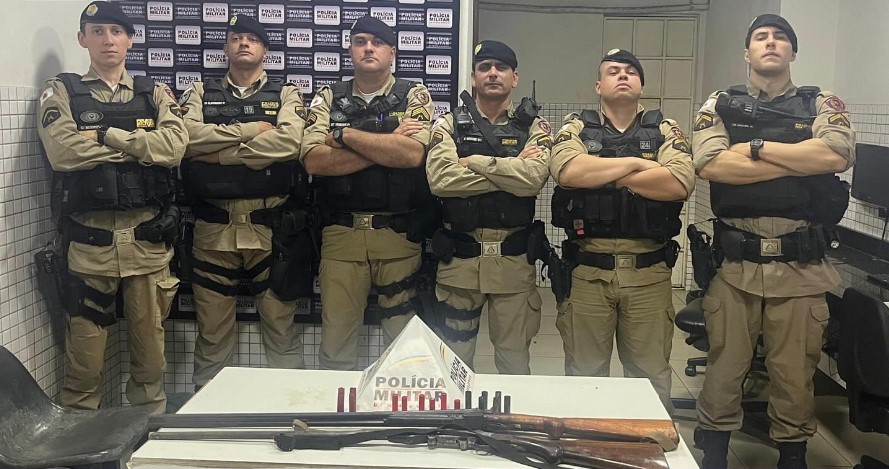 Ao passar próximo a entrada de Vermelho Velho, os Militares avistaram a motocicleta denunciada às margens da rodovia, porém ao aproximar para realizar abordagem o condutor fugiu sentido Bom Jesus do Galho deixando o outro indivíduo que foi abordado. A motocicleta foi perseguida por uma das equipes Tático Móvel que foi abordada logo em seguida, sendo localizado com o condutor da motocicleta alguns cartuchos e, próximo ao outro abordado no mato ,um saco contendo uma espingarda cano simples cal .32, e uma espingarda cano duplo- cal .32