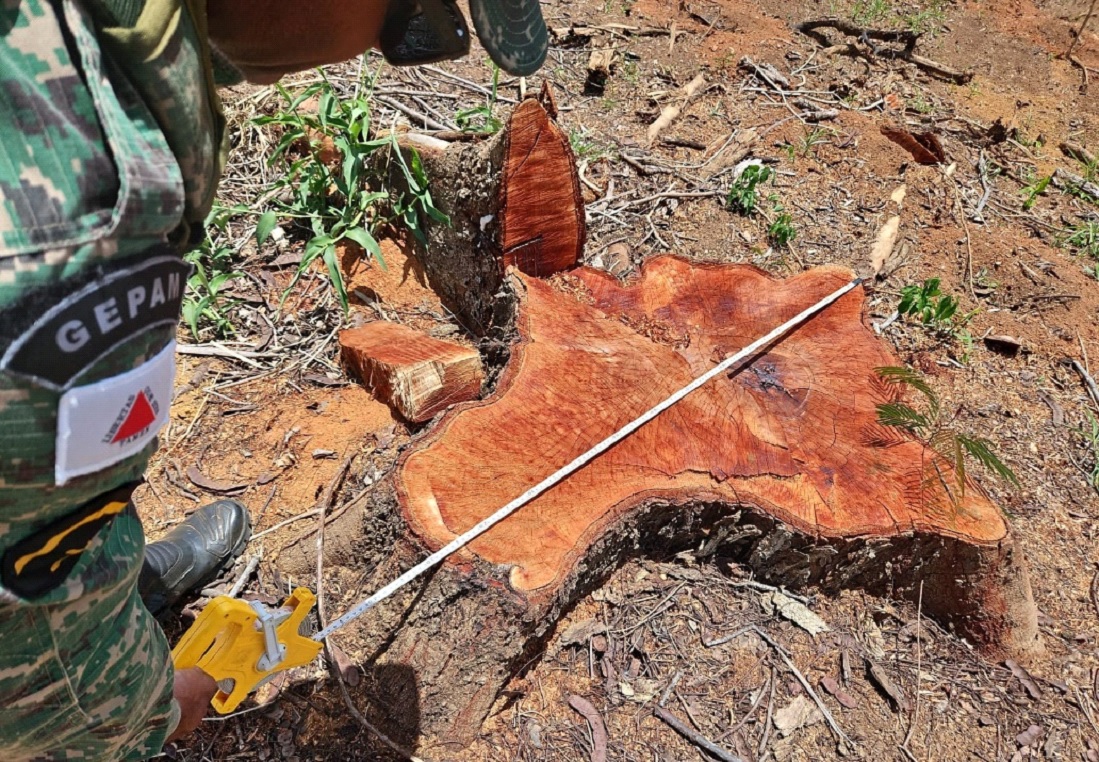 Além dos armamentos e equipamentos proibidos utilizados em caça predatória de animais silvestres, que foram apreendidos em Ubaporanga e Piedade de Caratinga, foi apreendido uma máquina escavadeira hidráulica em flagrante que realizava um desmatamento de floresta nativa.