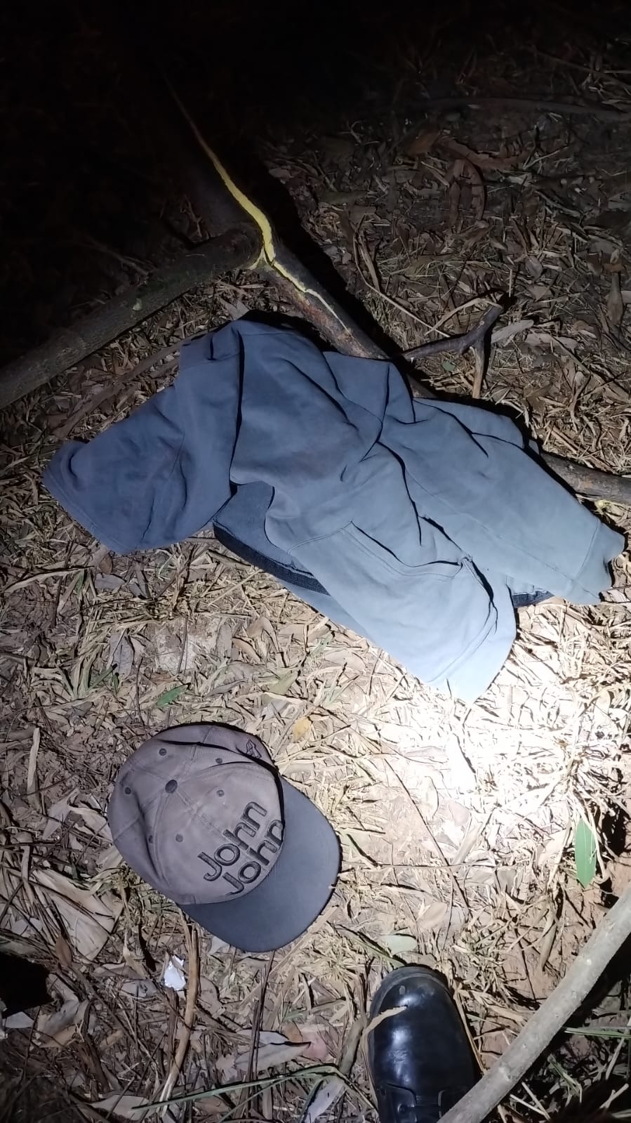 De posse das características dos autores, uma equipe da Polícia Militar realizou o rastreamento e localizou um boné e uma blusa de frio de um dos autores, sendo os materiais apreendidos.