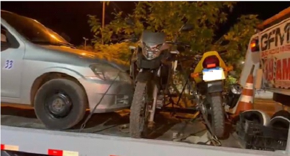 Ainda durante as diligências as equipes perceberam que uma motocicleta Honda CBX, cor amarela, com outros dois autores passando na estrada abaixo do local do fato em baixa velocidade e olhando para o local em que as equipes estavam, porém, sem conseguir visualizá-las. Militares posicionaram na estrada e ao tentarem abordar a motocicleta, os autores tentaram evadir, mas não conseguiram.