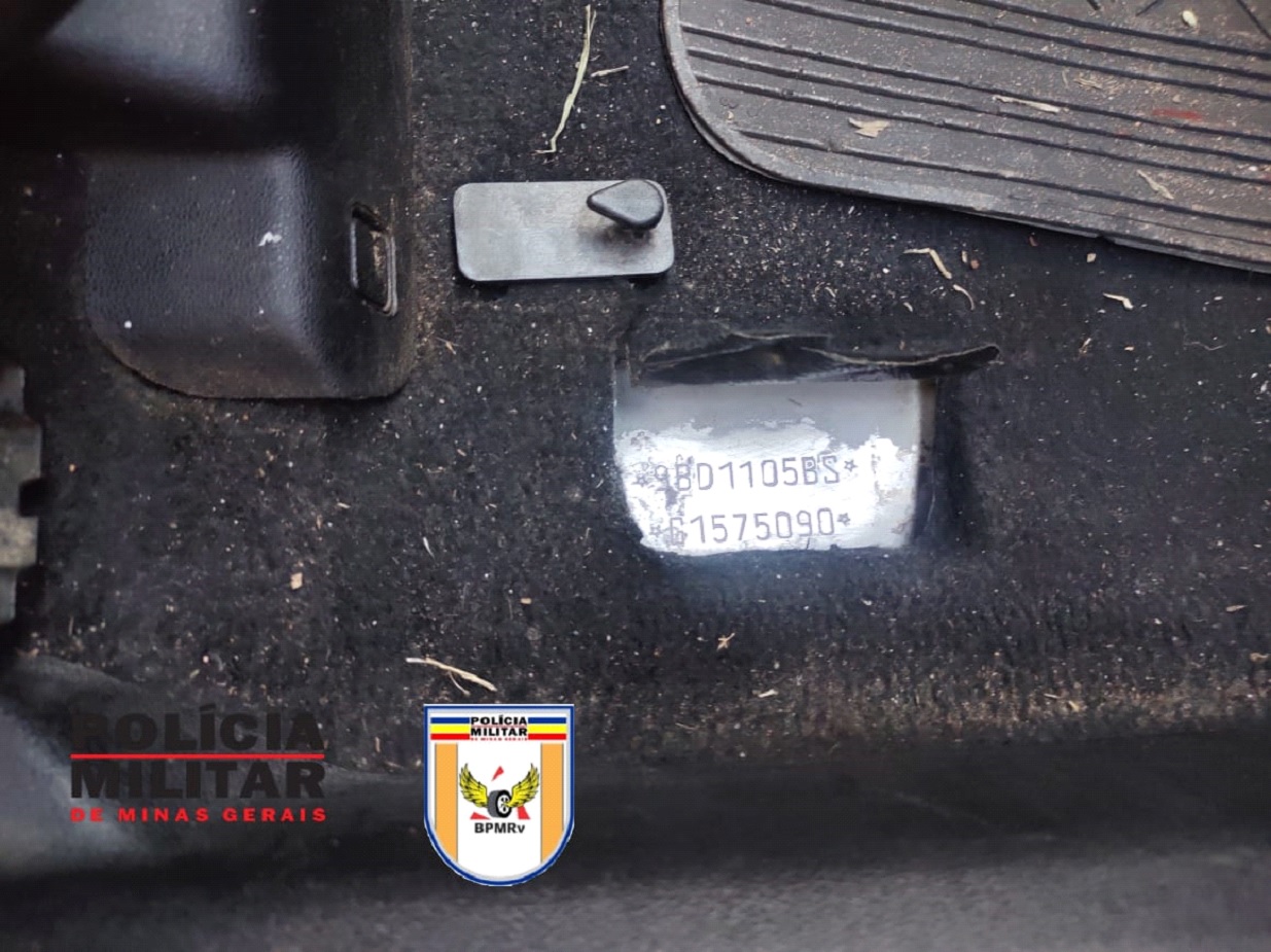 Com utilização de técnicas de identificação veicular, a polícia percebeu algumas adulterações nos sinais de identificação, tais como número de chassi e etiquetas autodestrutíveis. “Conseguimos contato com a proprietária do veículo original em Belo Horizonte e ela nos mandou a foto do veículo estacionado em sua garagem. O condutor nos alegou que o havia trocado o motor do veículo por este haver sido danificado e que o original estaria em um galpão de fazenda às margens da BR-116”, contou o tenente Arthuzo.
