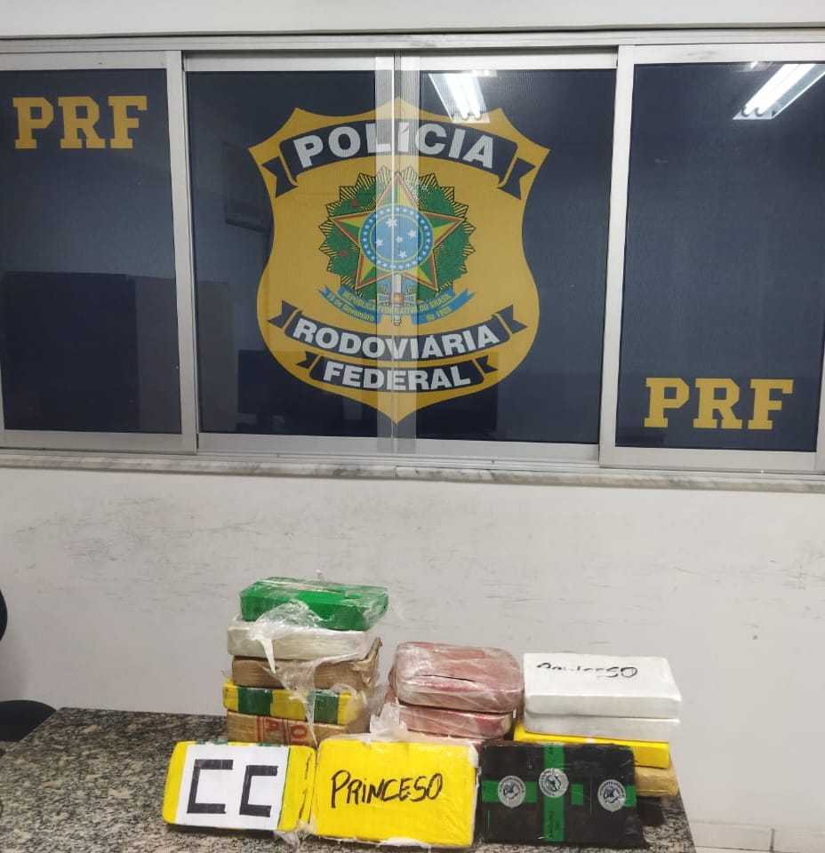 MANHUAÇU – Nessa quinta-feira(15), por volta das 12h, no KM 558 da BR -116, em Manhuaçu foi abordado o ônibus de cor branca. Na fiscalização foi solicitado ao motorista a identificação de todos os passageiros e respectivas identificação das malas no bagageiro do ônibus. Foi pedido aos passageiros que descessem do ônibus e pegassem/identificasse as malas, tendo sobrado uma mala no compartimento, desta feita foi perguntado ao motorista que havia etiquetado as malas, de quem era aquela que estava sobrando, informando que era do passageiro do acento 45, senhor O. J. S. Mediante a análise da etiqueta foi identificado o passageiro em questão, então na presença deste, foi aberta a mala, e no seu interior havia 13 tabletes de pasta base, seis tabletes Cocaína/Cloridrato de Cocaína e um tablete de maconha.
