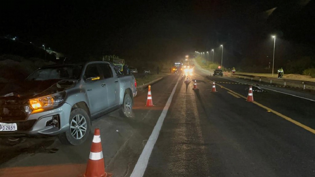 A motorista da caminhonete disse para a PRF que estava indo para Santa Bárbara do Leste, que viu o ônibus, e de repente a pedestre apareceu atravessando a rodovia. O motorista do ônibus confirmou a versão da condutora da caminhonete.