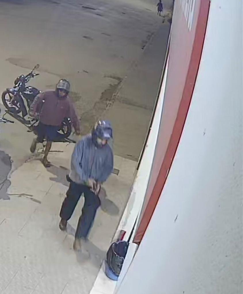 O garupa trajava capacete preto, blusa de frio roxa, bermuda escura e chinelo, e o condutor blusa de frio escura e uma camisa branca por baixo, calça escura e capacete escuro. Após o fato fugiram sentido ao Córrego Suiço. A Polícia Militar segue rastreamento na tentativa de localizar e prender os autores.