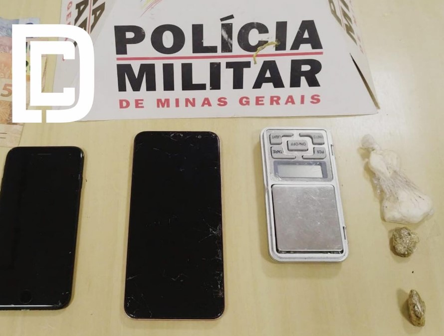 Foi realizada abordagem ao local da denúncia , rua Cinco, Ilha do Rio Doce, zona rural de Caratinga. Após diligências foram localizadas uma porção de cocaína, duas buchas de maconha uma , uma balança, e dois aparelhos celulares.