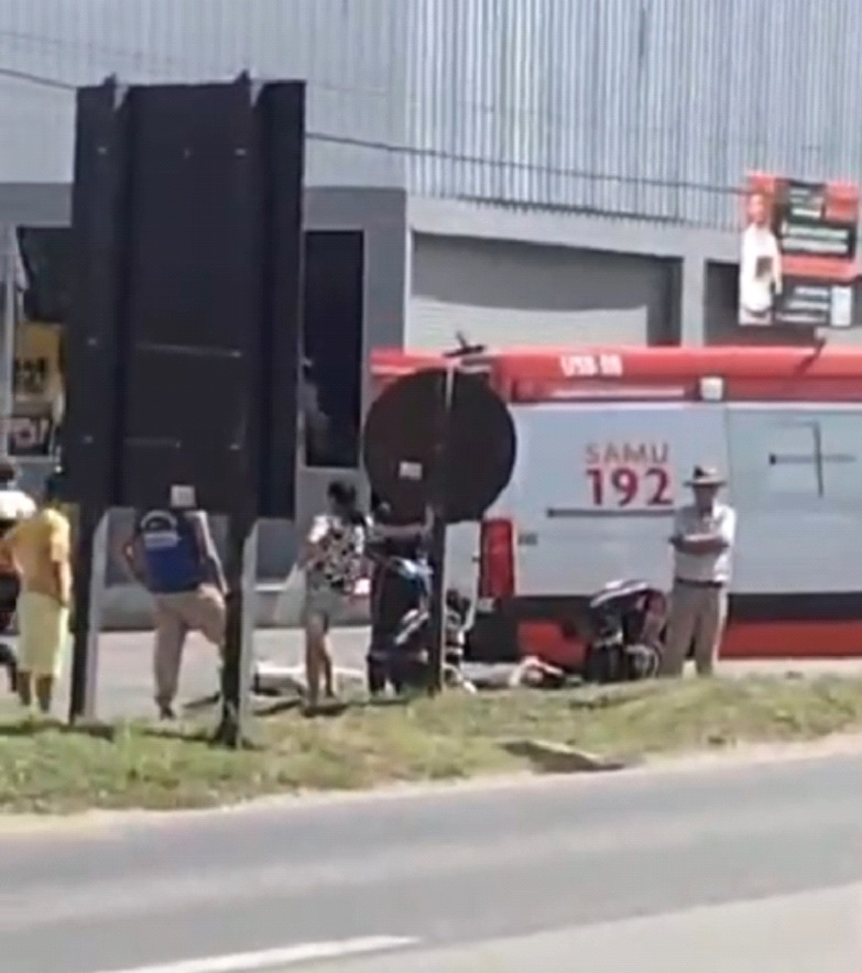 E uma colisão entre carro e moto aconteceu por volta das 10h, na rua João Pinheiro, próximo a loja Água e Luz. O motorista do carro contou que seguia da travessa Jorge Coura Filho, e ao virar para entrar na João Pinheiro, acabou colidindo com um ciclista que estava descendo da Professor Olinto. O motociclista foi socorrido pelo Samu com fortes dores pelo corpo.