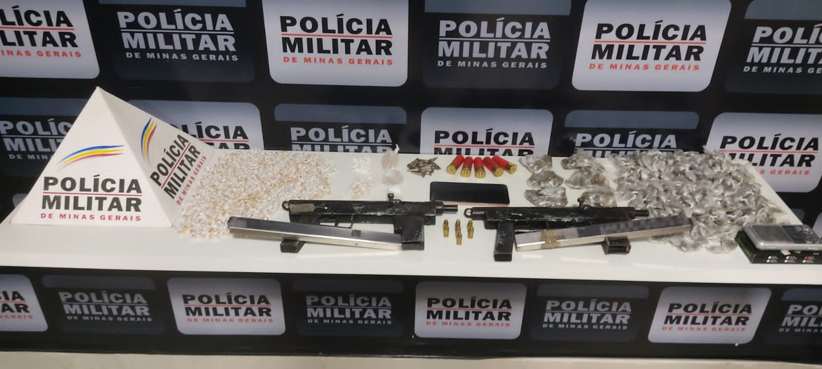 MANHUAÇU – Nesta segunda-feira (28), a Polícia Militar apreendeu submetralhadoras, drogas e munições durante incursão na rua dos Pinheiros, no bairro São Francisco de Assis, em Manhuaçu.