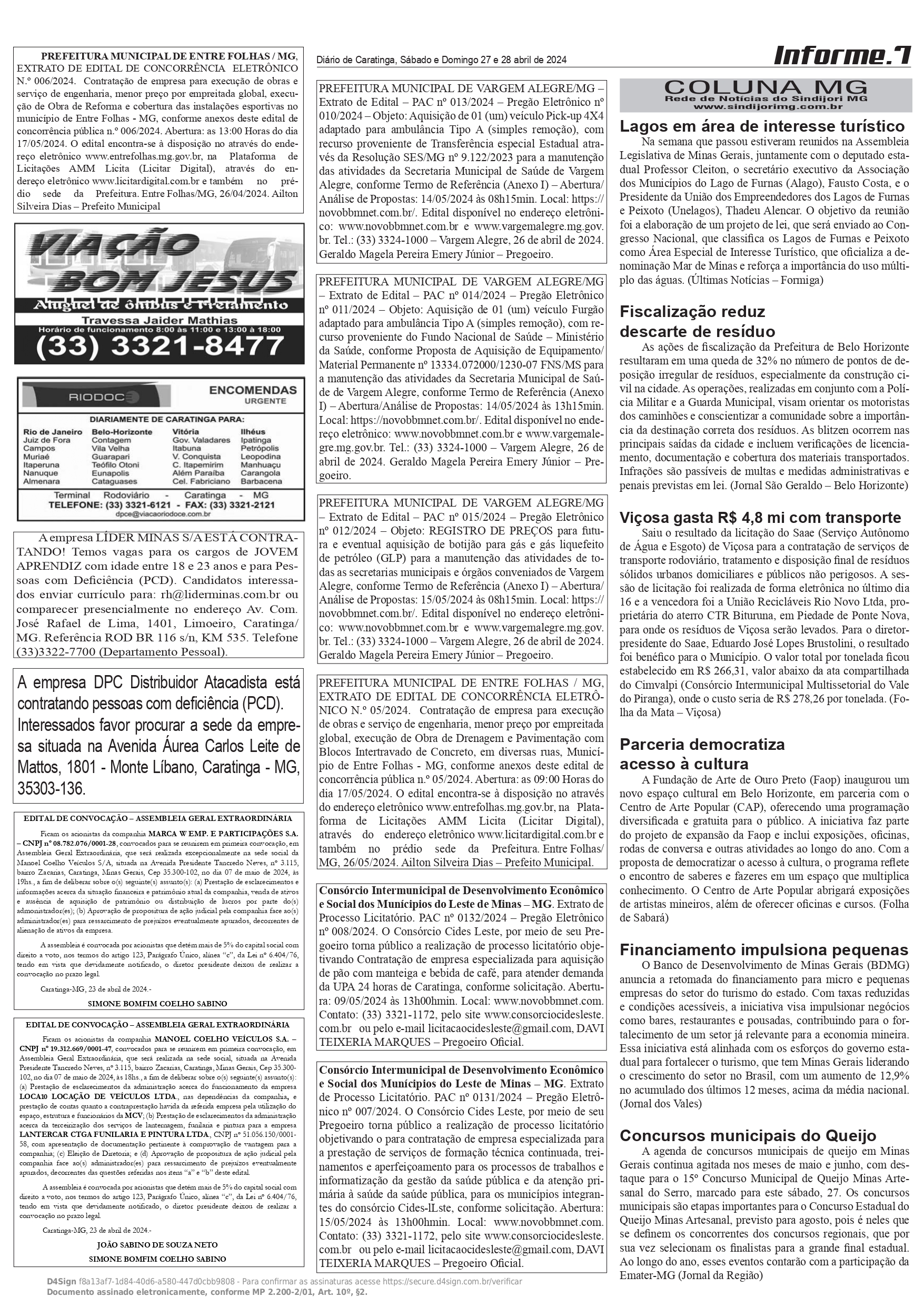 Desde 1995, o Diário de Caratinga é mais que um jornal — é a memória viva da região. Com ética, verdade e olhos atentos ao futuro, ele conecta gerações, circulando hoje em 20 cidades, tanto no papel quanto nas telas.