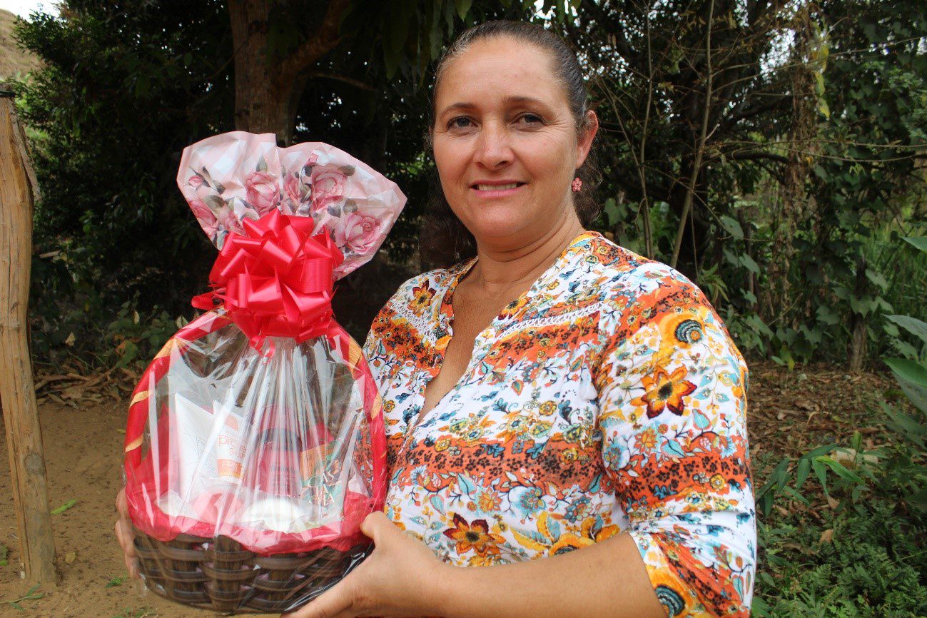 A Secretaria e a Prefeitura homenagearam Lourdinha com uma cesta com cosméticos para cuidados diários com a pele, contendo sabonete esfoliante, protetor solar e cremes para mãos e rosto. “Queremos que você cuide da sua saúde”, diz Amanda. “Agora serei uma trabalhadora rural cheirosa”, diverte-se Lourdinha.