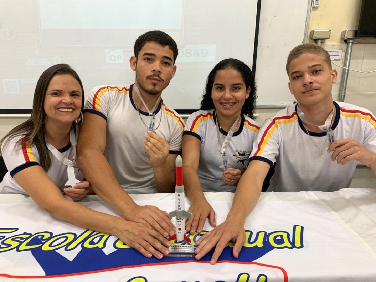 CARATINGA- Eduardo Tavares, Kaio Martins e Vitoria Guedes são estudantes do 2° do Ensino Médio da Escola Estadual Dom Cavati, em Ubaporanga. Juntos, com apoio da professora de Física Clarina Santos, foram vice-campeões na Jornada Brasileira de Foguetes. A competição faz parte da Olimpíada Brasileira de Astronomia e Astronáutica.