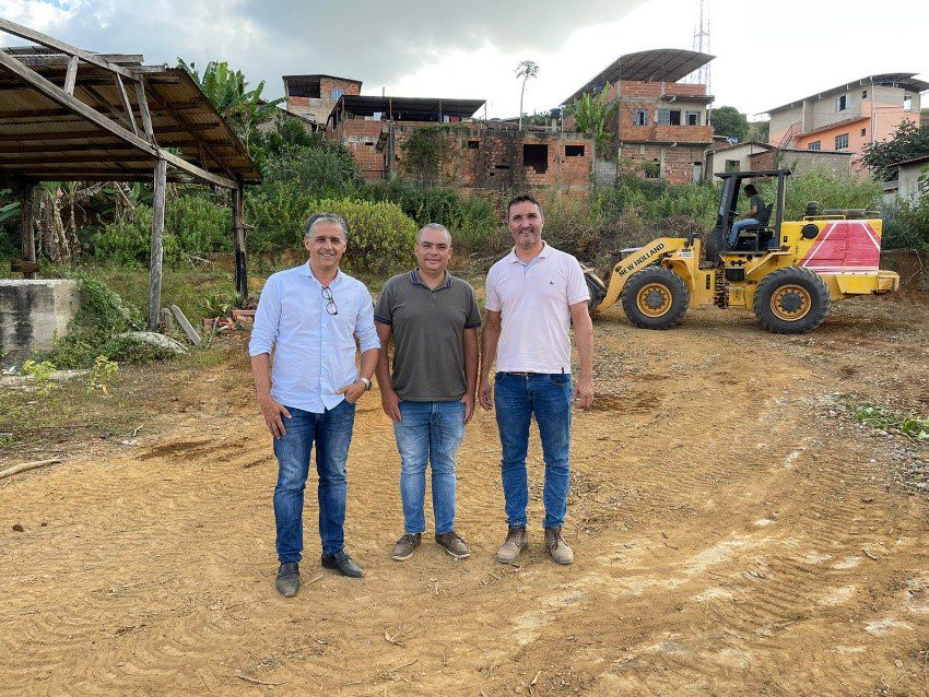 INHAPIM – Na tarde desta última segunda-feira (18), o prefeito Márcio Elias, o “Marcinho”, e o vice-prefeito Sandro Adriano, o “Sandro da Saúde” acompanhados do secretário de Obras Públicas, Welisson Abrantes Martins estiveram no bairro Esperança para acompanhar o início das obras de preparação do terreno (terraplenagem) para construção da segunda maior praça pública da história do município de Inhapim.