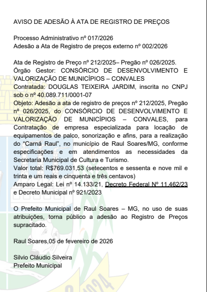 ‘O Carnaval de Raul Soares é, acima de tudo, o Carnaval da família. Estamos preparando uma festa organizada, segura e acolhedora, pensada para todas as idades. Em 2026, damos um passo importante com a criação de um novo circuito, que vai integrar o Parque de Exposições à praça central, valorizando nossos blocos, fortalecendo o comércio local e oferecendo uma experiência ainda melhor para moradores e visitantes’.”