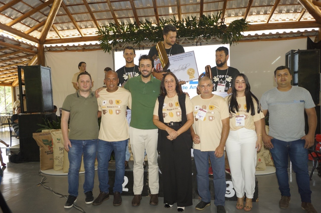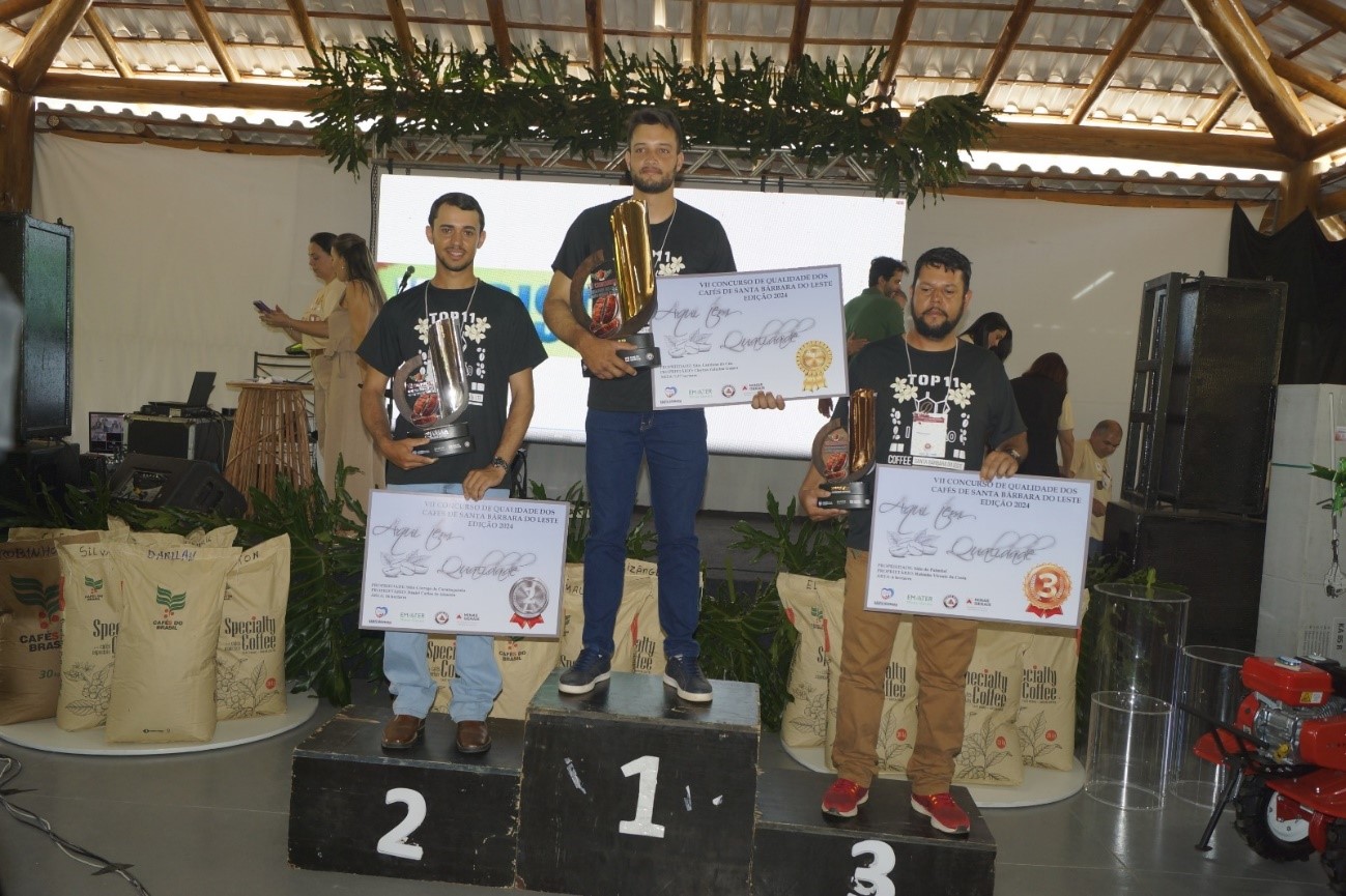 No VII Concurso Qualidades de Café de Santa Bárbara do Leste os premiados foram: 3º lugar – Robinho Vicente da Costa; 2º lugar: Daniel Carlos de Almeida e o grande campeão: Cleyton Zeferino Gomes.
