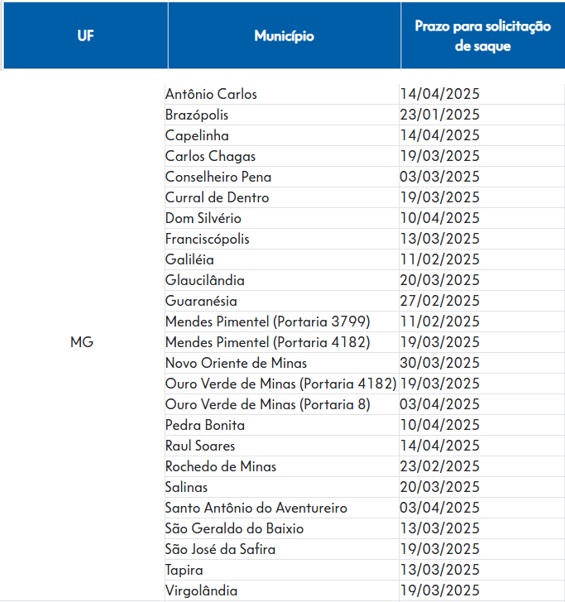 DA REDAÇÃO – Os trabalhadores de Antônio Carlos, Capelinha e Raul Soares, em Minas Gerais, podem solicitar, a partir desta quarta-feira (15), o saque do Fundo de Garantia do Tempo de Serviço (FGTS) por calamidade. A liberação, decorrente das chuvas intensas nas cidades, pode ser solicitada à CAIXA por meio do Aplicativo FGTS.