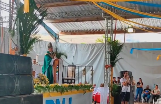Os momentos de oração e louvor no DNJ foram conduzidos pelo padre Higor, vigário paroquial da Paróquia de Santa Luzia, “entusiasta dos movimentos jovens, cativando toda a juventude regional presente no evento”.