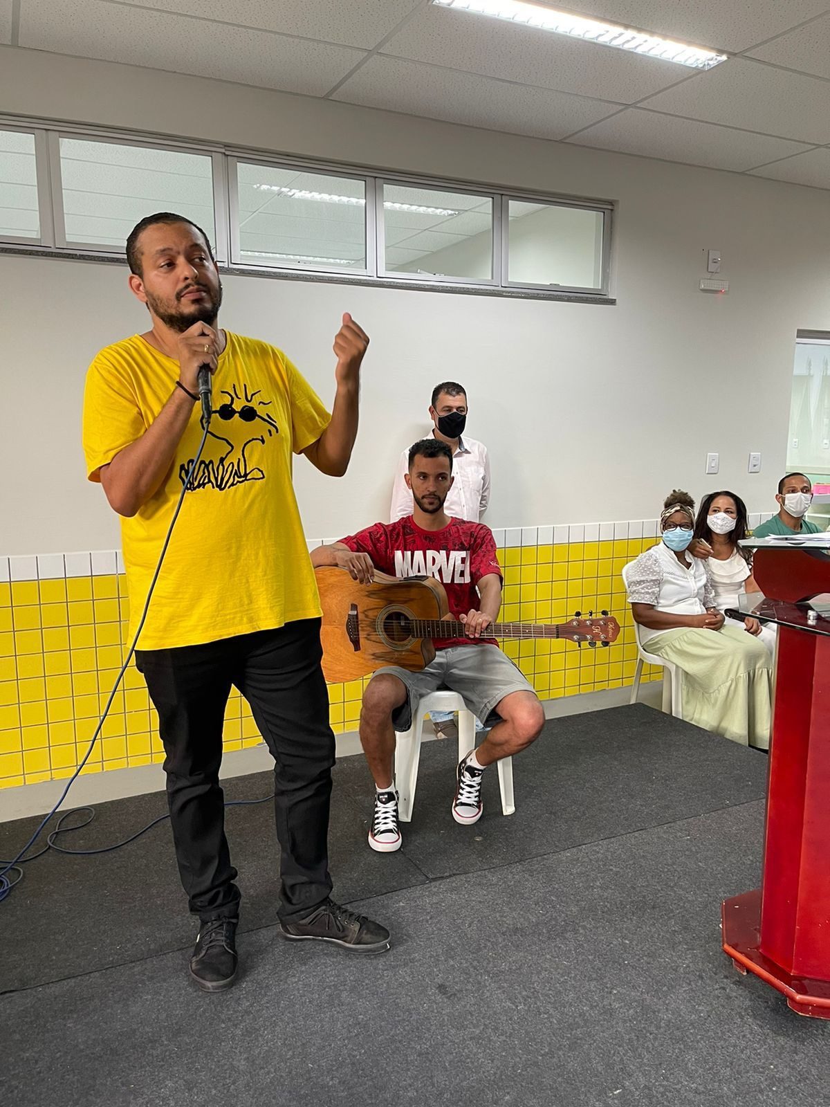 Logo em seguida, o cantor e compositor Lyzandro Vinícius Luiz Cardoso entoou à capela, o poema “Inhapim, Inhapim!” da renomada escritora professora Marilene Godinho.