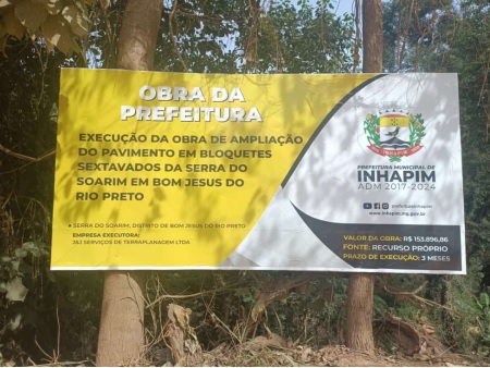 Na última semana, a população do distrito de Bom Jesus do Rio Preto, presenciou o início das obras de calçamento de mais um trecho da Serra do Soarim, e neste perímetro serão calçados e drenados um trecho aproximado de 160 metros, totalizando R$153.896,86, provenientes do caixa próprio da prefeitura. “Já são quase duas dezenas de morros e serras de difícil circulação em períodos chuvosos que receberam ou estão recebendo calçamento em blocos de concreto, o que resultou em melhor qualidade de vida para os moradores das regiões beneficiadas principalmente para agricultura familiar, impactando no escoamento da produção agrícola, incentivando o desenvolvimento rural e alavancando a economia do município. Com início das obras de calçamento e drenagem pluvial do segundo trecho da Serra do Soarim chegamos a quase duas dezenas de calçamentos em serras e morros na zona rural de Inhapim, pontos estes conhecidos pela difícil locomoção de veículos, motociclistas e pedestres”, ressaltou o prefeito Márcio Elias, o “Marcinho”.