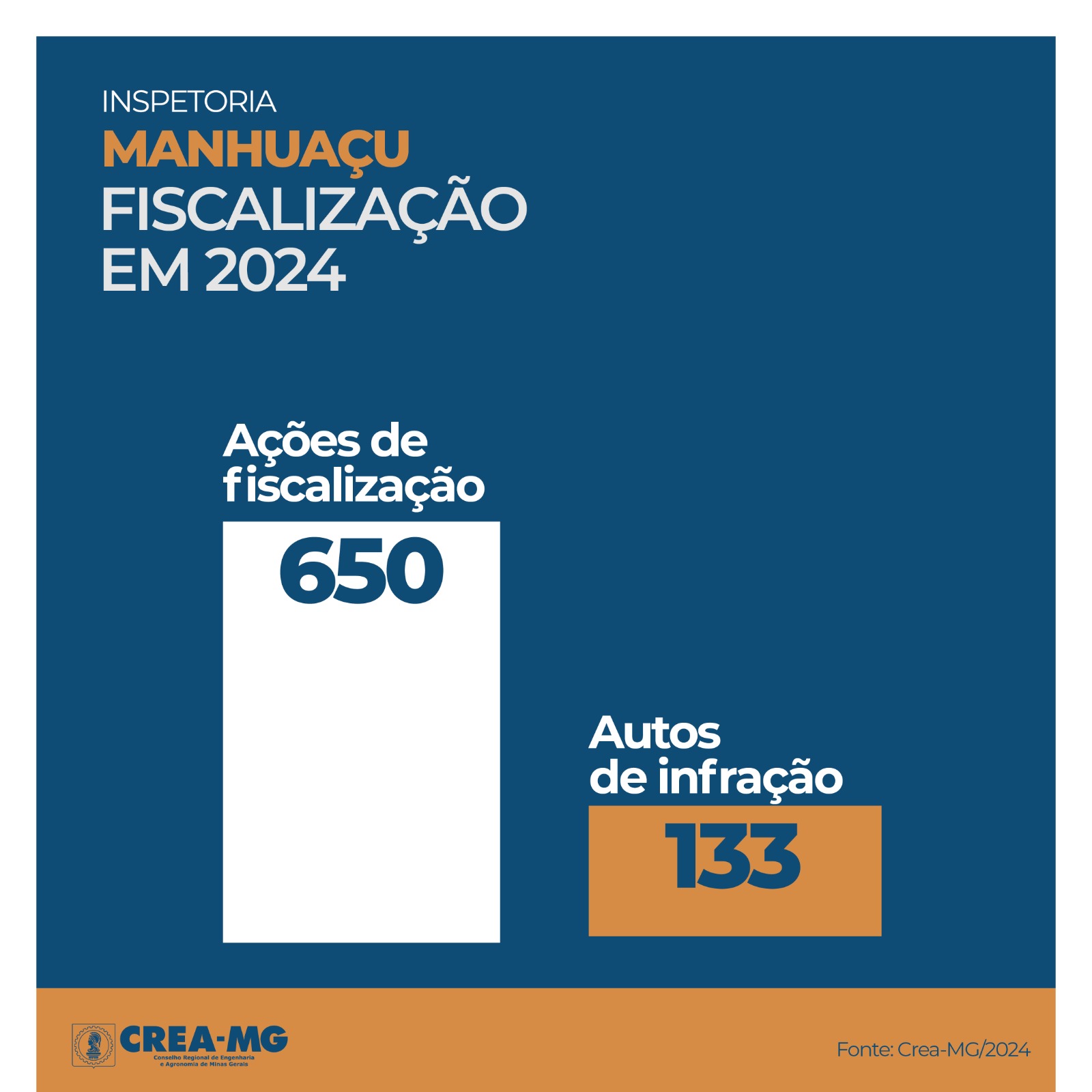 MANHUAÇU – Mais de 16 mil irregularidades foram encontradas pela fiscalização do Conselho Regional de Engenharia e Agronomia de Minas Gerais (Crea-MG) em obras e serviços de engenharia, agronomia e geociências em todo o estado, em 2024. Nas mais de 68 mil ações fiscalizatórias realizadas no último ano, as principais infrações constatadas foram a não contratação de profissionais legalmente habilitados para a execução de atividades técnicas e a falta de registro de empresas no Crea-MG. Somente em Manhuaçu, foram realizadas 650 ações com a emissão de 133 autos de infração.