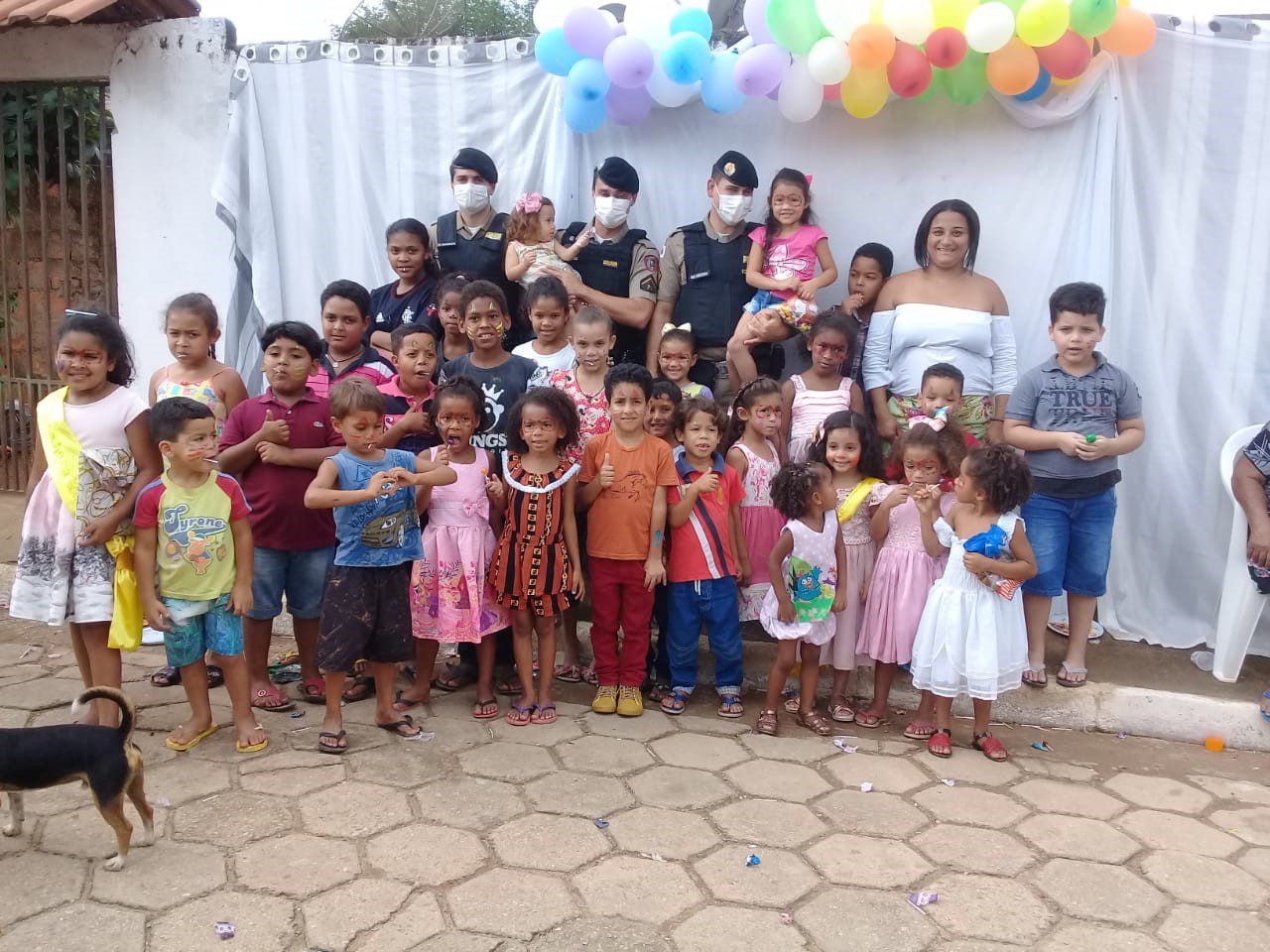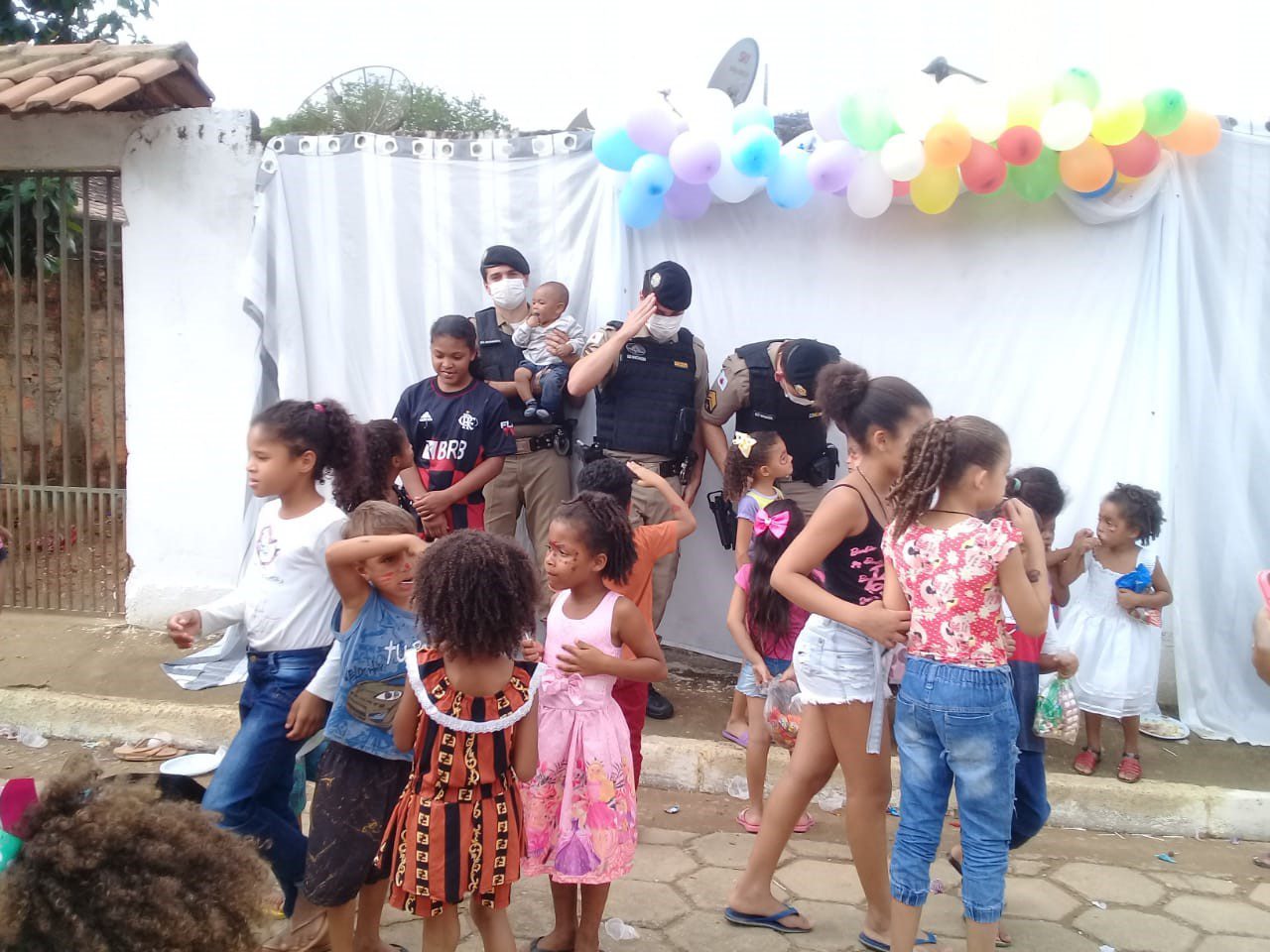 VARGEM ALEGRE – Nesta data comemorativa do Dia das Crianças, 12 de outubro, os militares de Vargem Alegre, em parceria com Elisangela da Silva Brito Marques, “cidadã que constantemente abrilhanta a vida de muitas crianças em nossa comunidade”, frisa a Polícia Militar, entre outros colaboradores, realizaram brincadeiras e distribuição de dezenas de brindes infantis para várias crianças que se divertiram nesse dia especial.