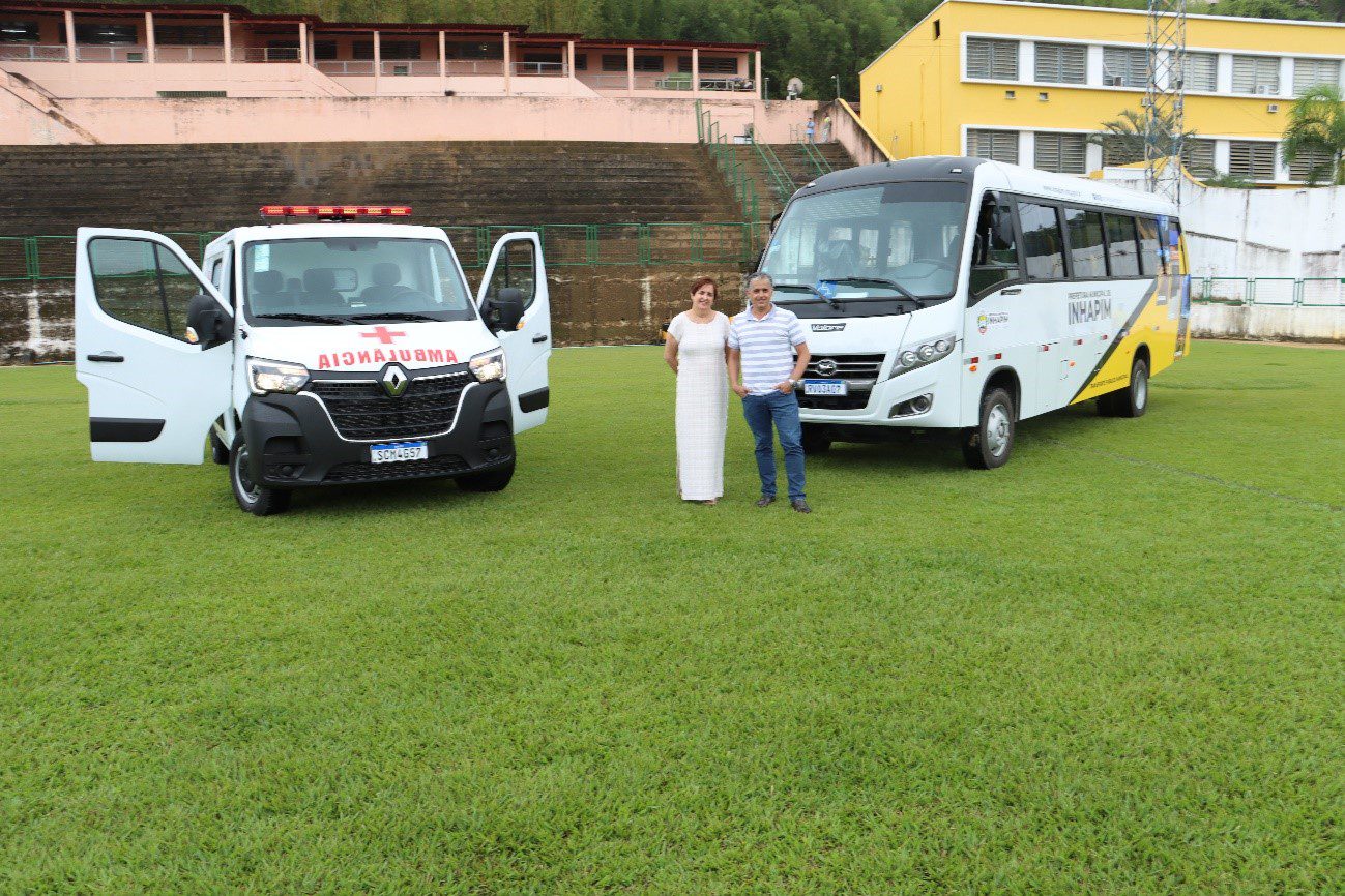 INHAPIM – Na última sexta-feira (2), no gramado do estádio municipal Dr. Guilhermino de Oliveira, o prefeito Márcio Elias, o “Marcinho”, entregou para a secretária de Saúde Ana Elza Silva Araújo, mais uma ambulância e um micro-ônibus que irão compor a frota visando o conforto e a segurança dos pacientes usuários.